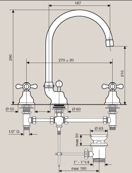 Высокий смеситель для раковины с д/к на 3 отверстия Emmevi Deco Classic 12043/BR бронза