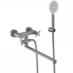- настенные. Монтируются непосредственно на вертикальную плоскость. Это классические смесители, не требующие для установки профессиональных сантехнических навыков. Все детали конструкции легко демонтируются и заменяются. Недостаток — поверхность требует ухода во избежание образования налета и следов от воды;