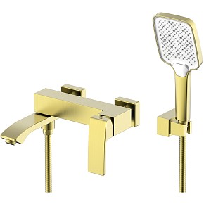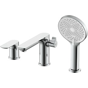 - на борт ванны. Подходят только для композитных чаш — акриловых, квариловых и т. д. Комплектация бывает разной: всегда есть излив, в большинстве случаев ручной душ. При заказе ванны многие производители предлагают услугу заводской подготовки отверстий (при покупке их смесителя или по предоставленным чертежам);
