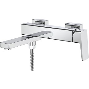 - на борт ванны. Подходят только для композитных чаш — акриловых, квариловых и т. д. Комплектация бывает разной: всегда есть излив, в большинстве случаев ручной душ. При заказе ванны многие производители предлагают услугу заводской подготовки отверстий (при покупке их смесителя или по предоставленным чертежам);