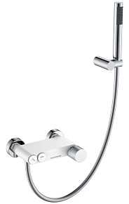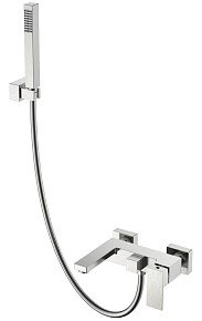 - на борт ванны. Подходят только для композитных чаш — акриловых, квариловых и т. д. Комплектация бывает разной: всегда есть излив, в большинстве случаев ручной душ. При заказе ванны многие производители предлагают услугу заводской подготовки отверстий (при покупке их смесителя или по предоставленным чертежам);