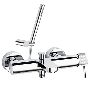 - на борт ванны. Подходят только для композитных чаш — акриловых, квариловых и т. д. Комплектация бывает разной: всегда есть излив, в большинстве случаев ручной душ. При заказе ванны многие производители предлагают услугу заводской подготовки отверстий (при покупке их смесителя или по предоставленным чертежам);