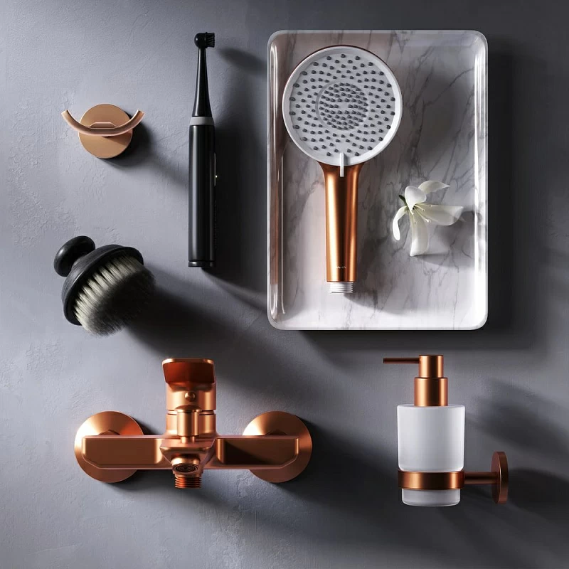 Настоящее произведение ювелирного искусства в вашей ванной комнате: нежный оттенок розового золота получается методом вакуумного напыления смеси 24-каратного золота, серебра и меди, в процессе которого микрочастицы сплава образуют стойкое соединений с латунной основой.