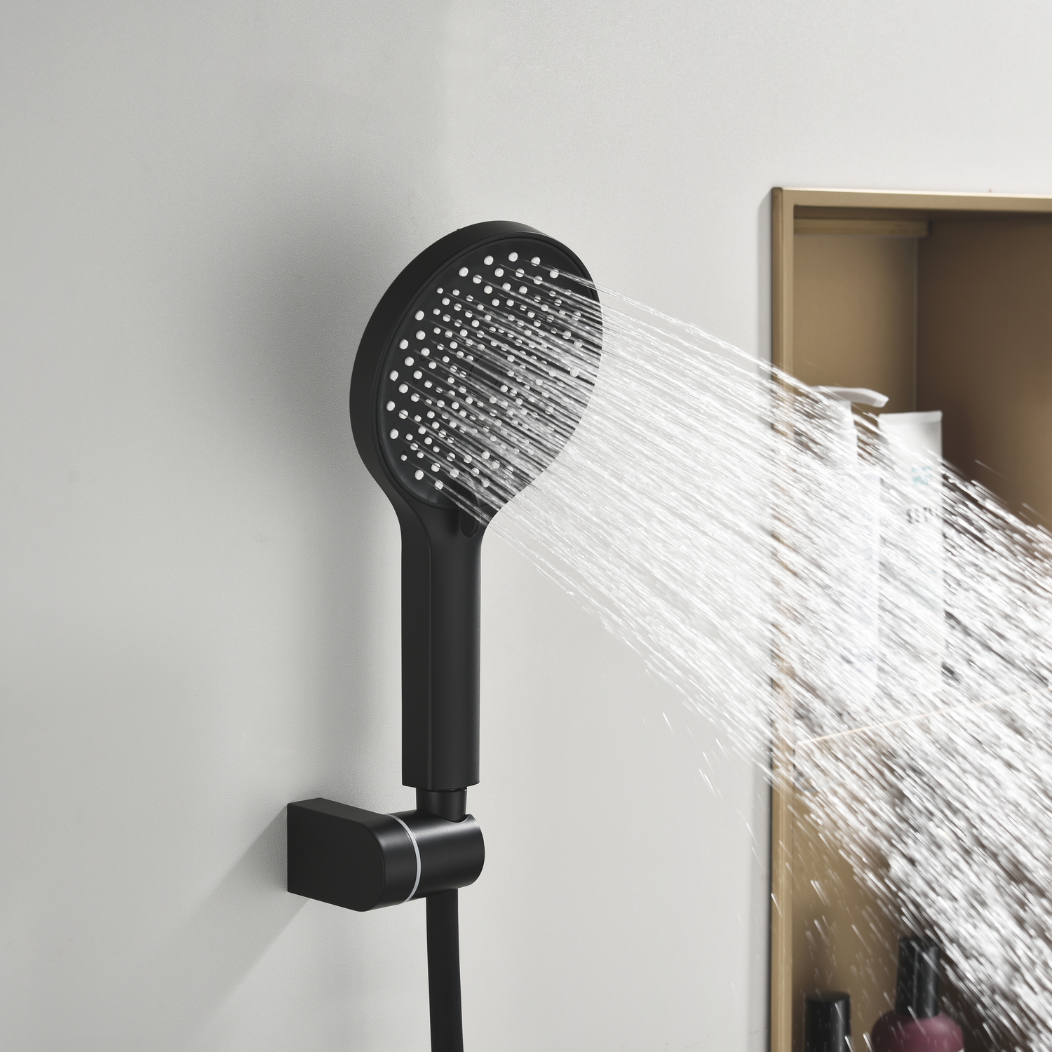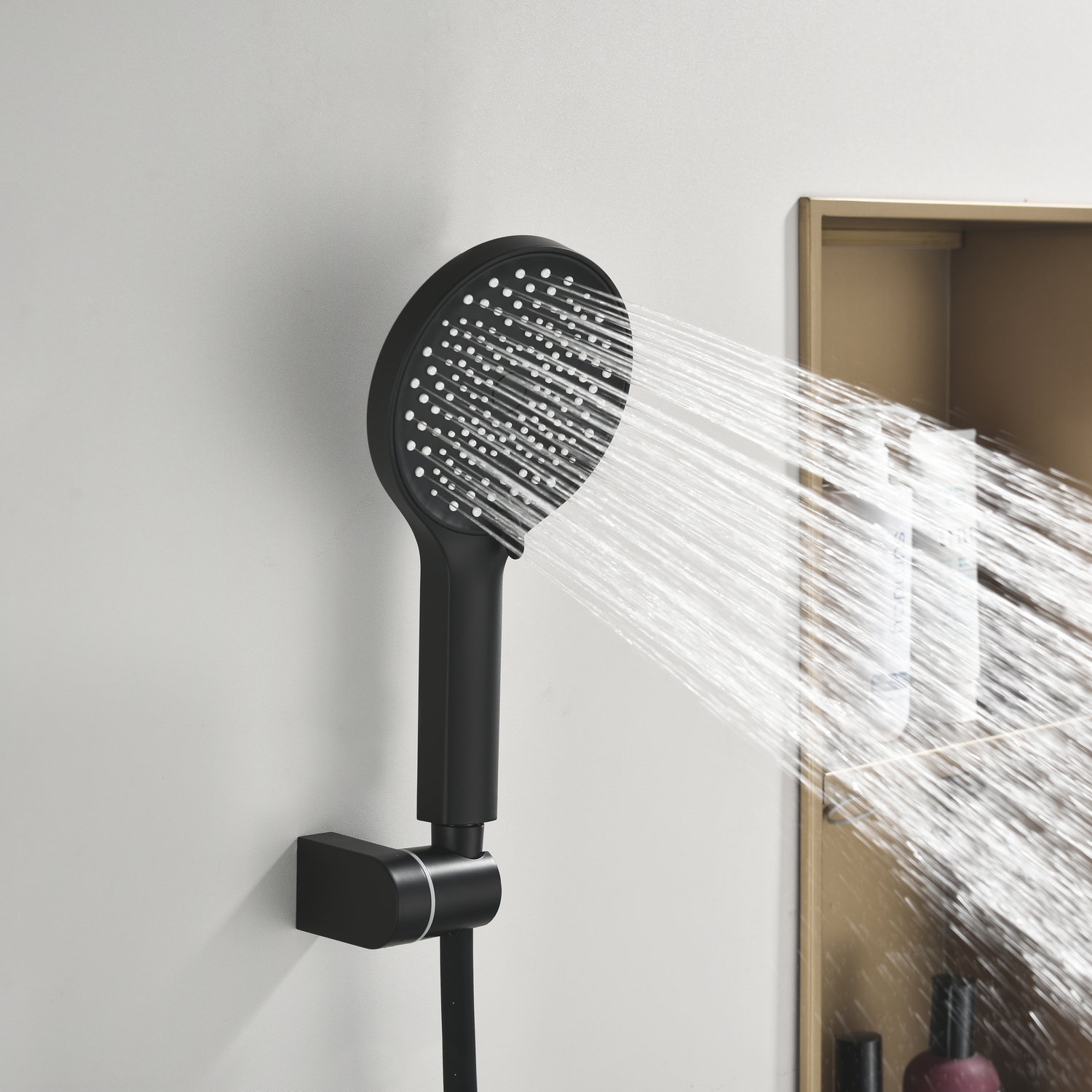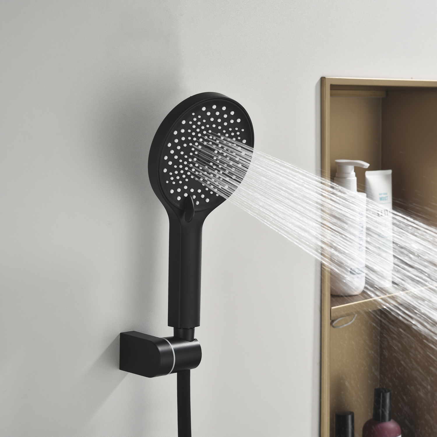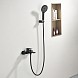 Душевая стойка Black&White в цвете черный матовый – многофункциональный и эргономичный элемент душевой зоны в Вашей ванной комнате. Корпус изделия изготовлен из сантехнической латуни, материал высокоресурсный и безопасный для здоровья. Управление потоками воды осуществляется с помощью керамического картриджа повышенной пропускной способности. Из потребителей на стойке установлен верхний душ, ручная лейка с режимами и излив, интегрированный в фронтальную часть корпуса. Для выбора режима работы установлен поворотный механический дивертор цилиндрической формы с насечками на корпусе для удобства использования мокрыми руками. Простые геометрические линии продукта гармонично встроятся в лаконичные интерьеры ванной комнаты.