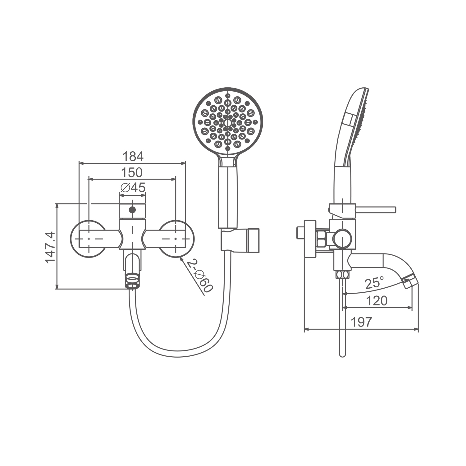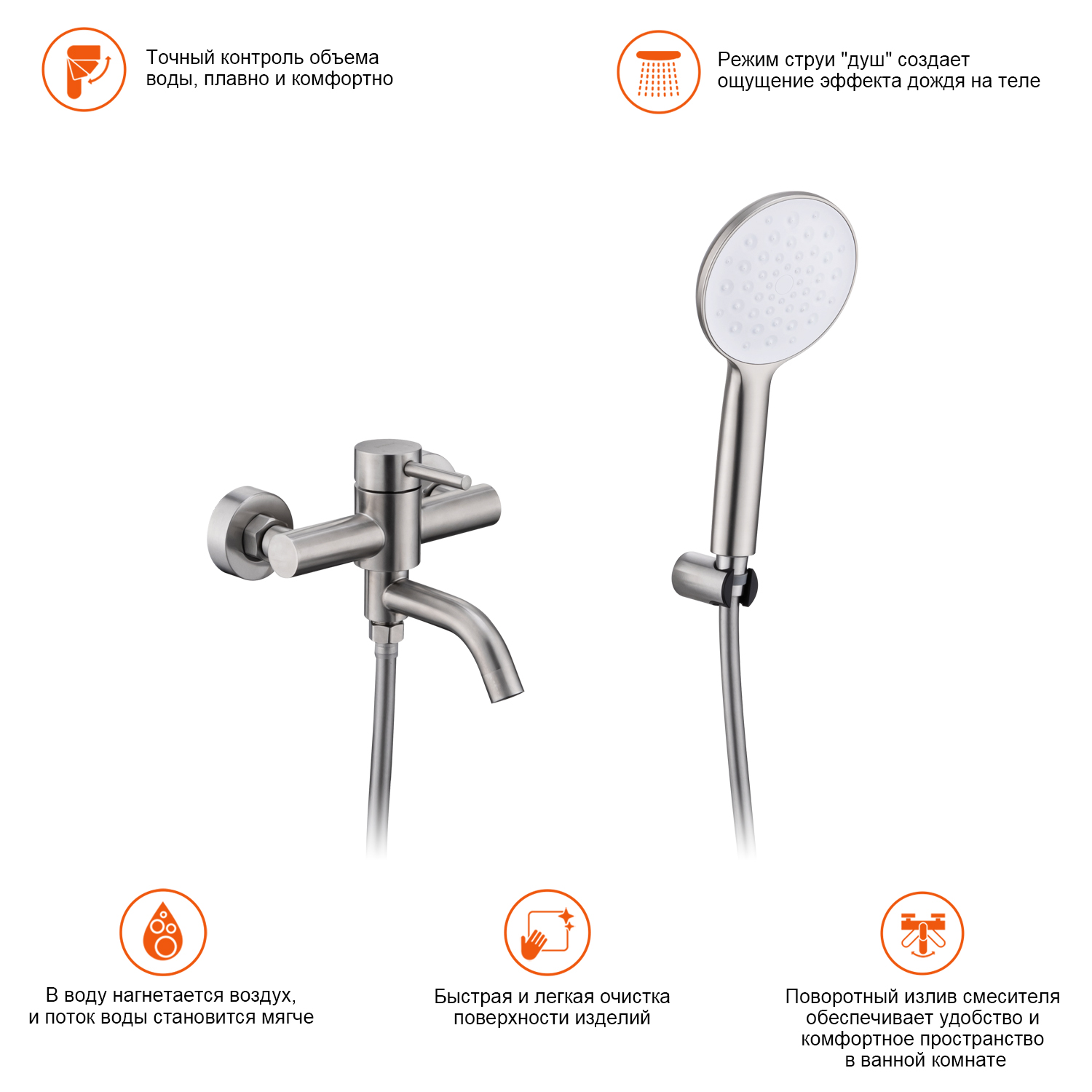 • Душевая лейка - 1 режим (пластик/силикон)