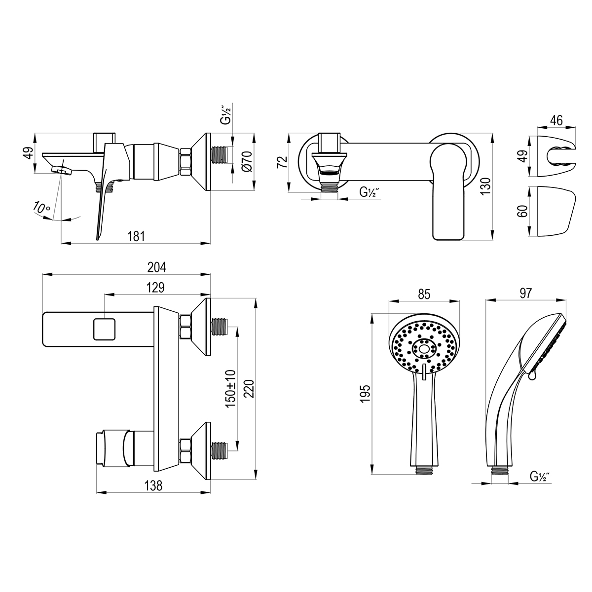 | В комплекте | Лейка Ø85×195 мм 5 режимов, настенное крепление для лейки, шланг 1,5 м, крепеж |