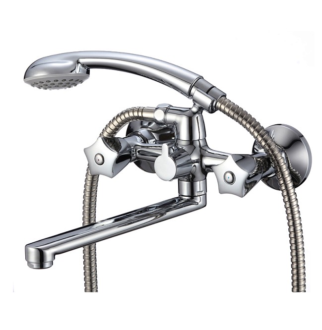 - Смеситель комплектуется душевыми аксессуарами, в том числе дополнительным держателем лейки.