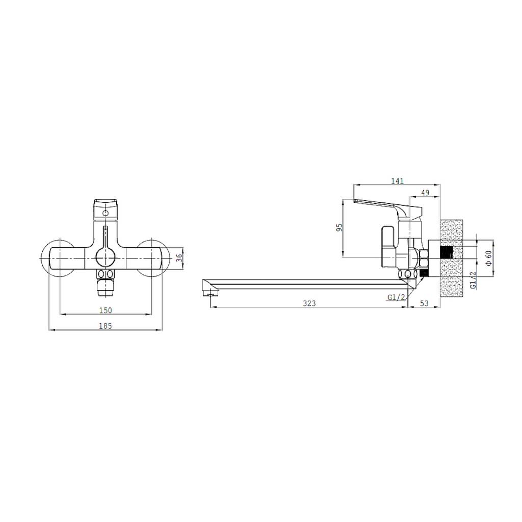 Смеситель для ванны с длинным изливом Splenka S30.22.06 черный матовый