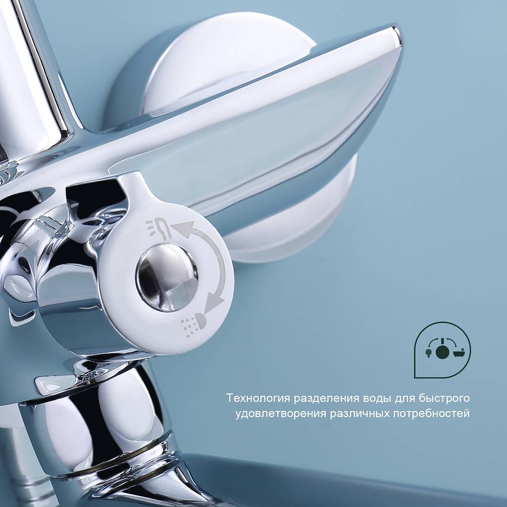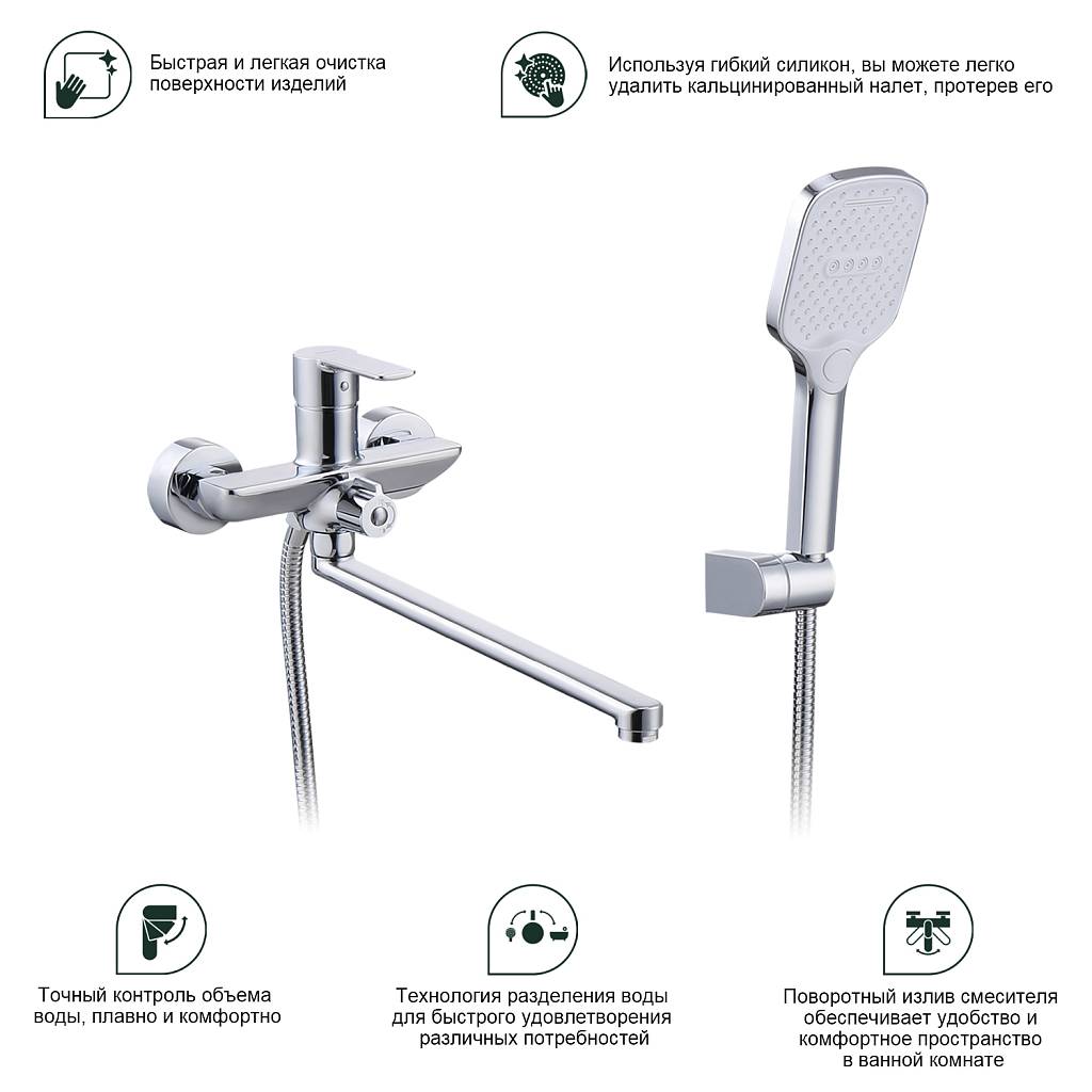 | Особенности | Смеситель, шланг, душевая лейка, держатель душевой лейки, эксцентрики, отражатели |