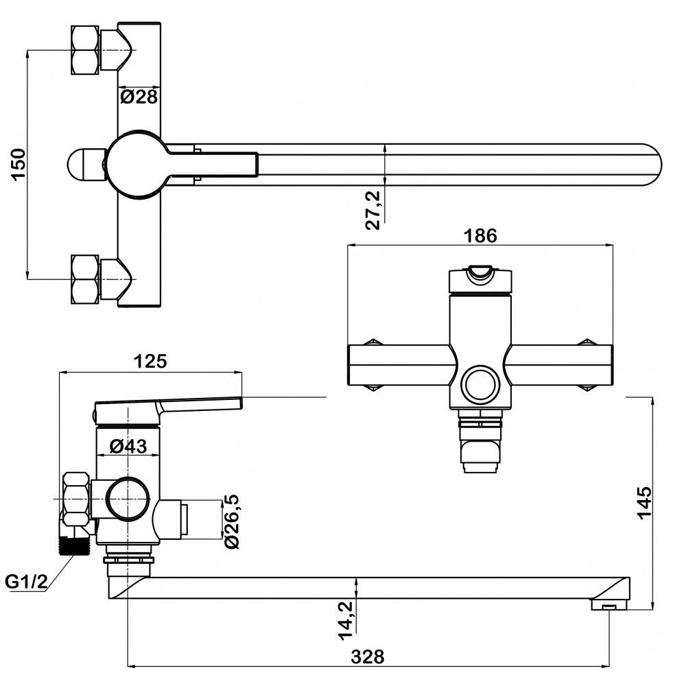 Смеситель для ванны с длинным изливом Swedbe Diana 1050