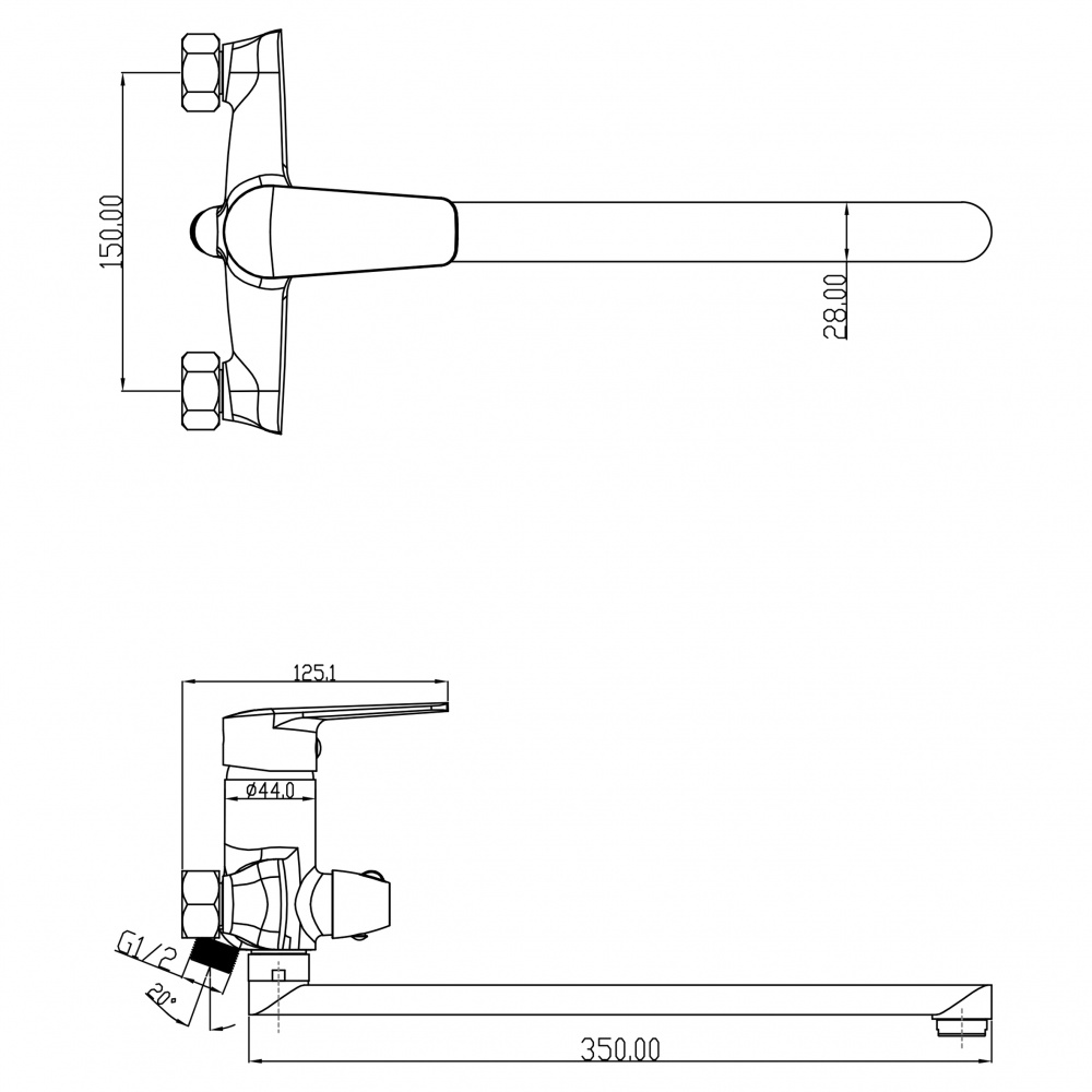 Смеситель для ванны с длинным изливом Swedbe Mars 1750