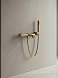 Комплектация: смеситель настенного монтажа, латунный ручной душ, держатель для ручного душа, гибкий полимерный шланг, аэратор, эксцентрики, чаши декоративные