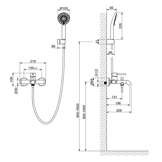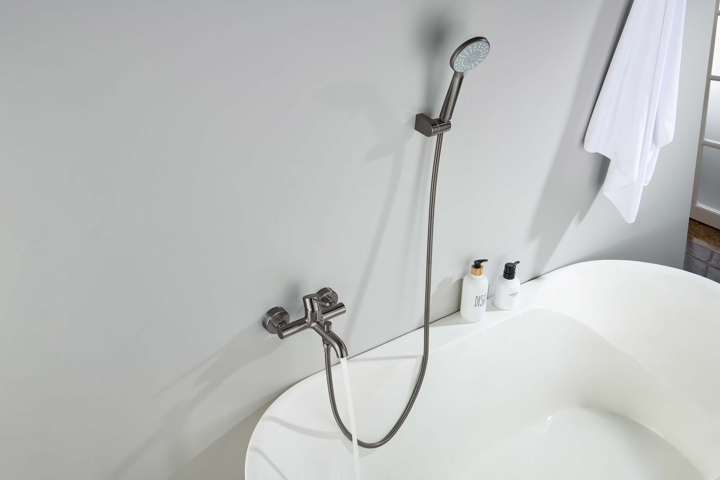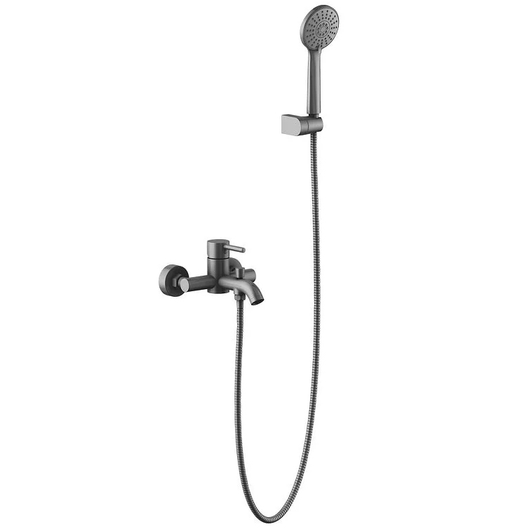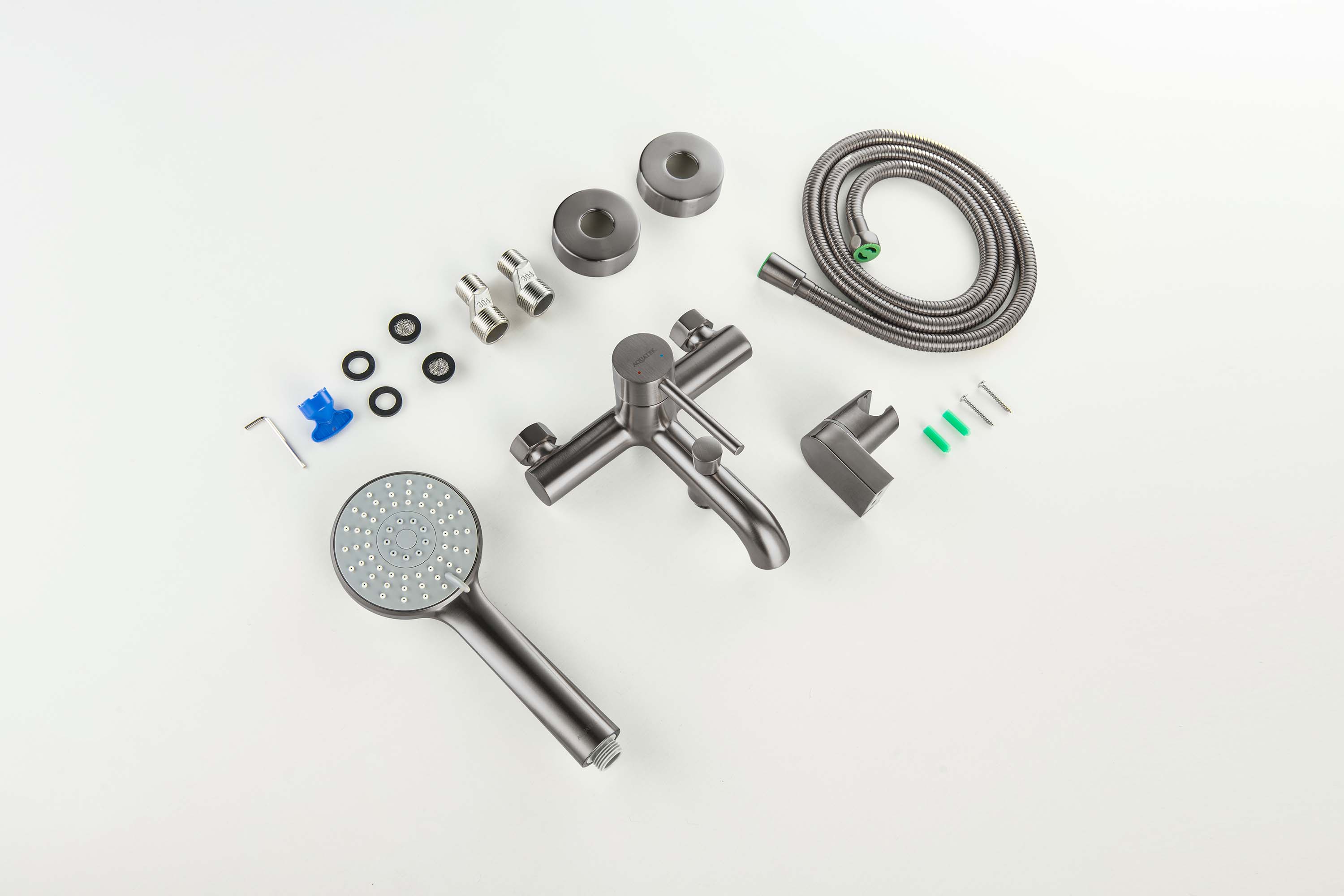 - Смеситель для ванны с душевым набором Акватек Европа оружейная сталь AQ1349BGM