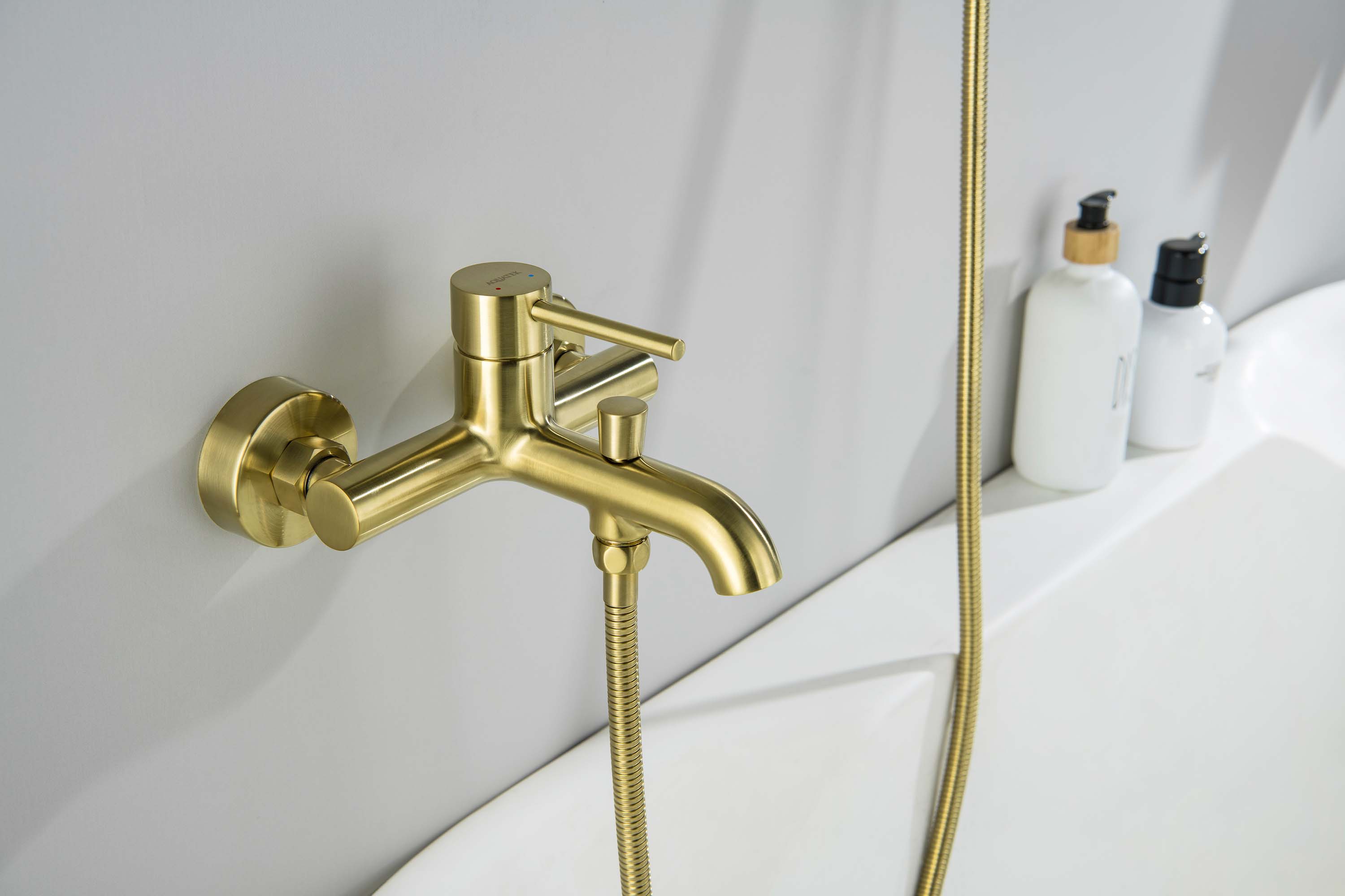 - Смеситель для ванны с душевым набором Акватек Европа шлиф золото AQ1349BG