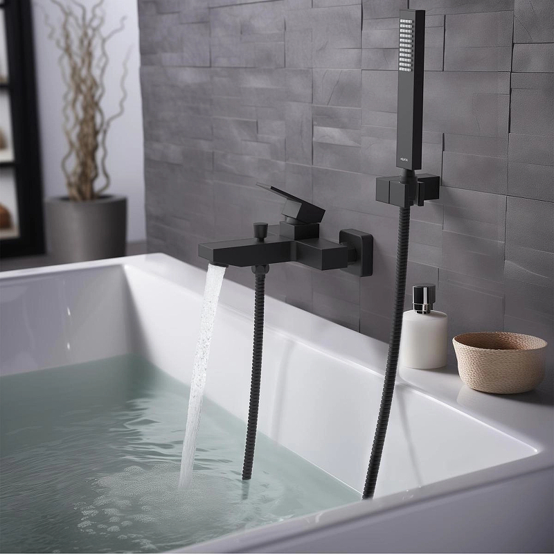 - Смеситель для ванны с душевым набором Акватек Либра черный матовый AQ1649MB