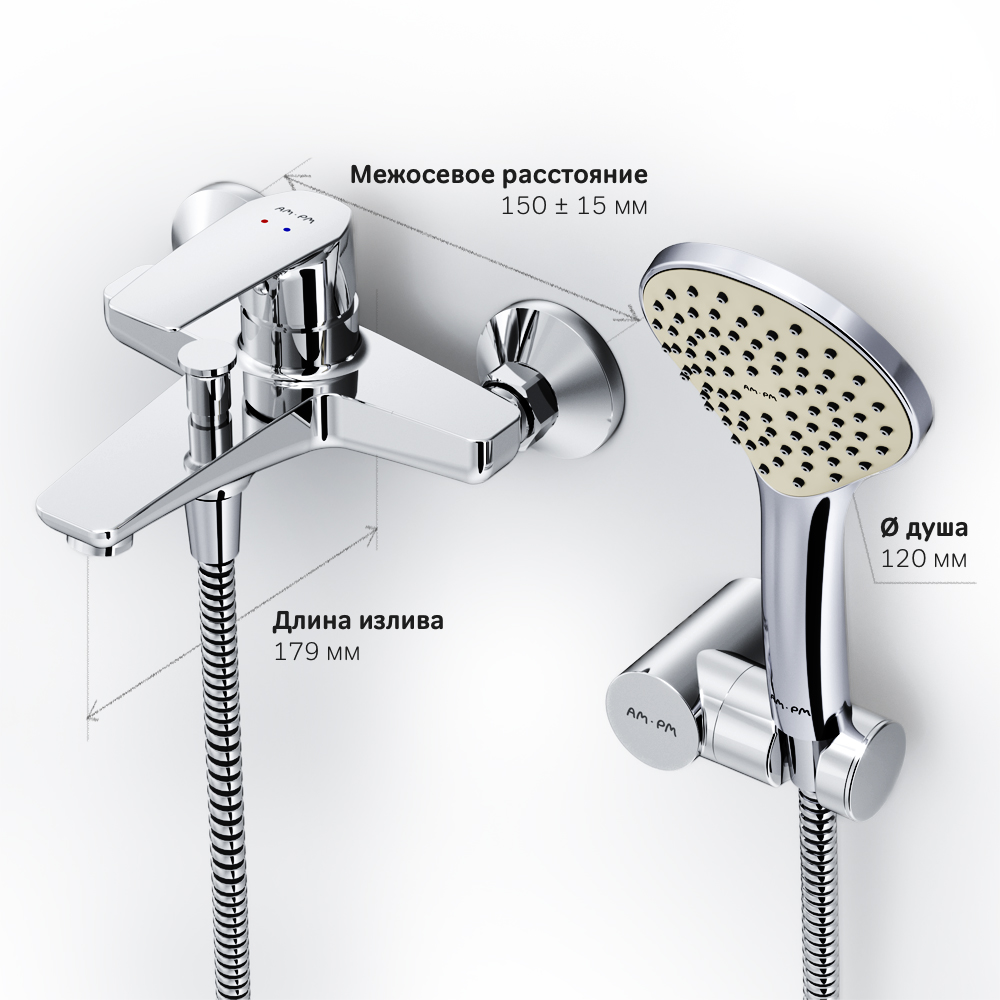 - Смеситель для ванны с душевым набором Am.Pm Gem F90A15000