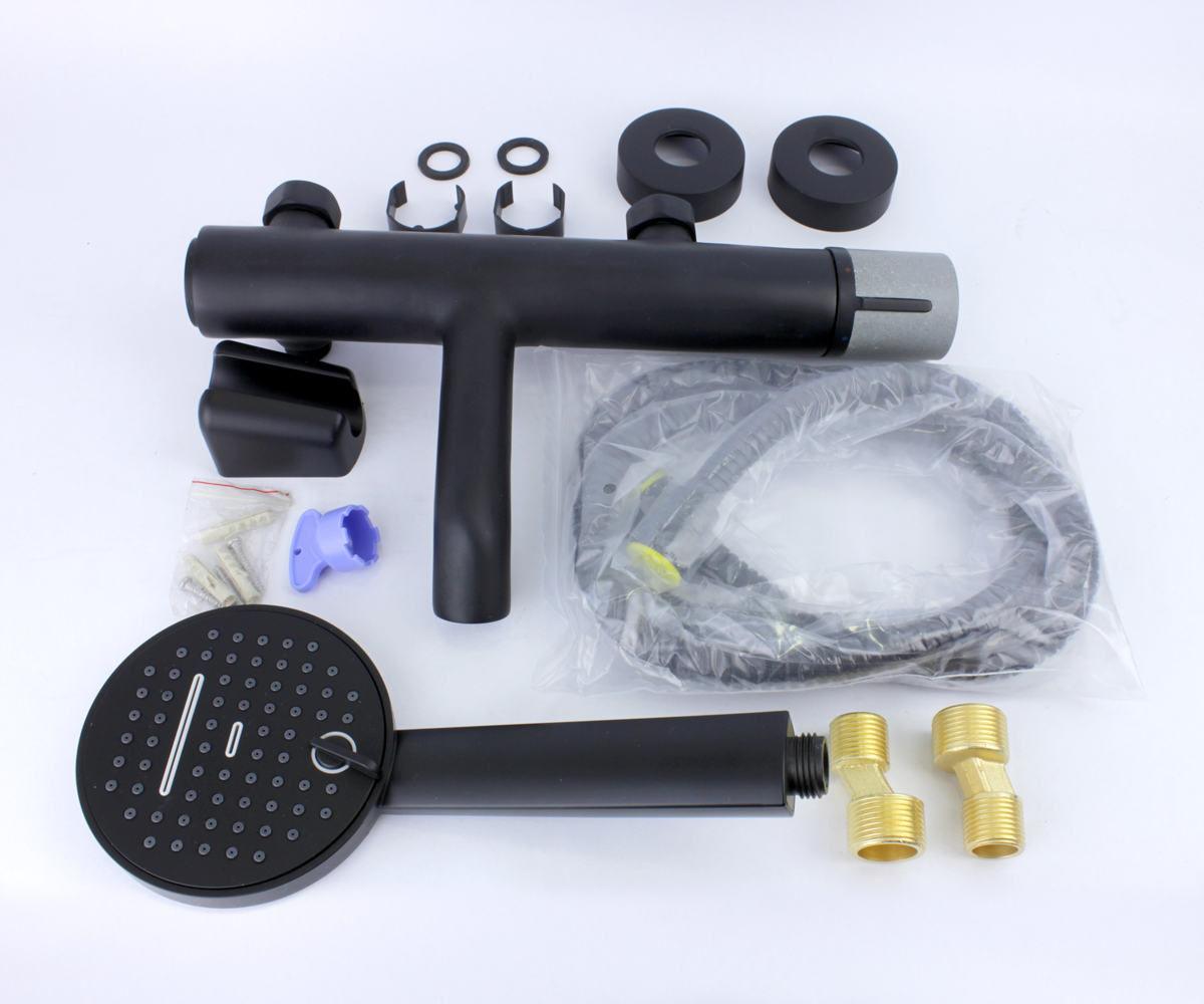 Смеситель для ванны с лейкой Bronze de Luxe Фокус черный матовый/ гранит 24603BG