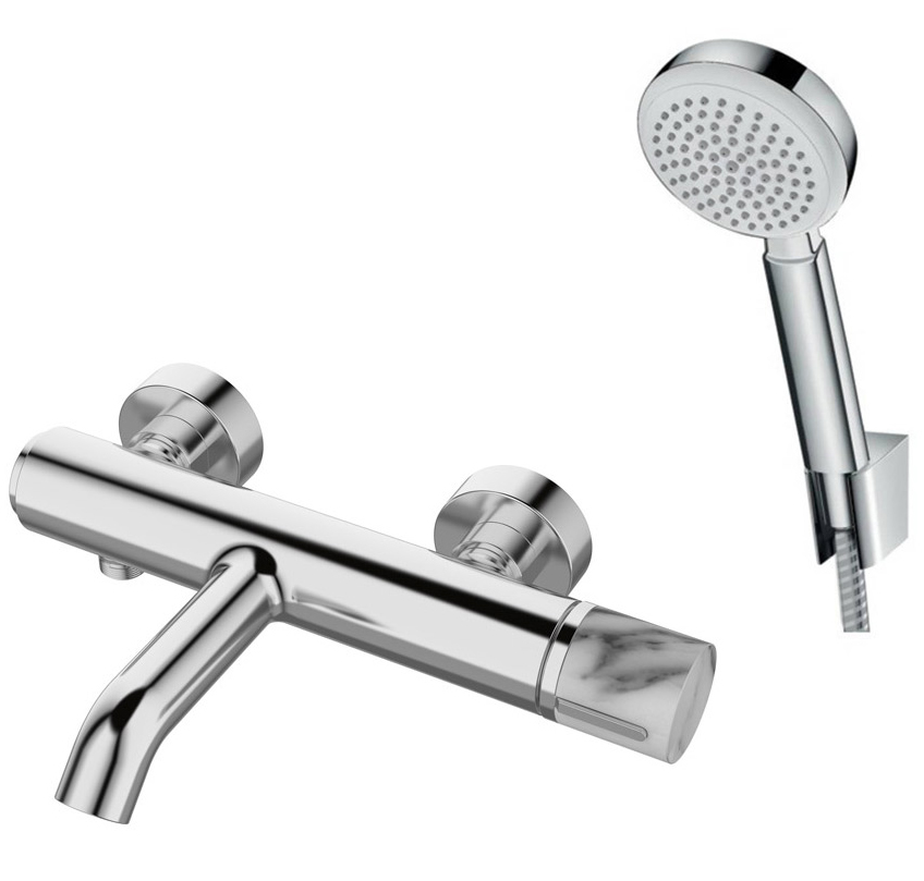 Смеситель для ванны с лейкой Bronze de Luxe Фокус хром/мрамор 24603CM