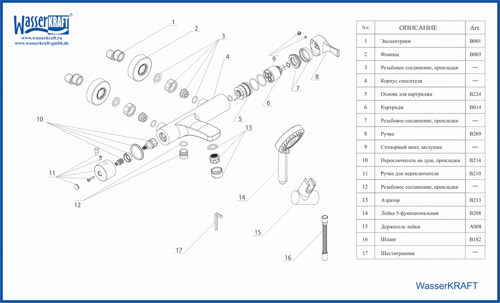 Смеситель для ванны WasserKRAFT Беркель (Berkel) хром 4801