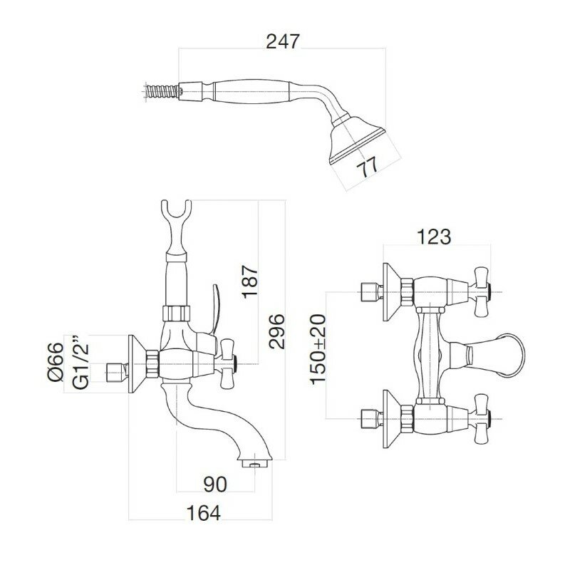 Комплектация: смеситель, лейка, держатель лейки, шланг