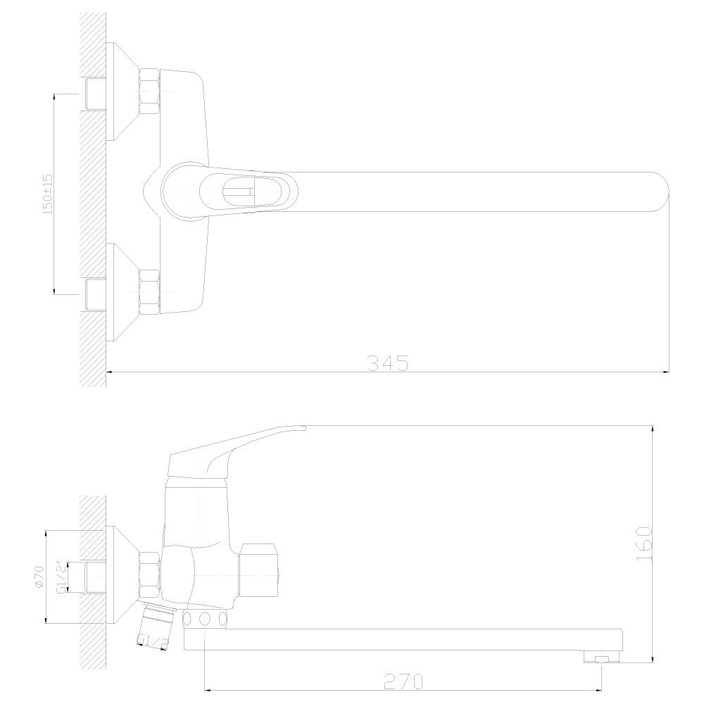- Аксессуары в комплекте (шланг 1,5 м, настенное крепление, 1-функциональная лейка)