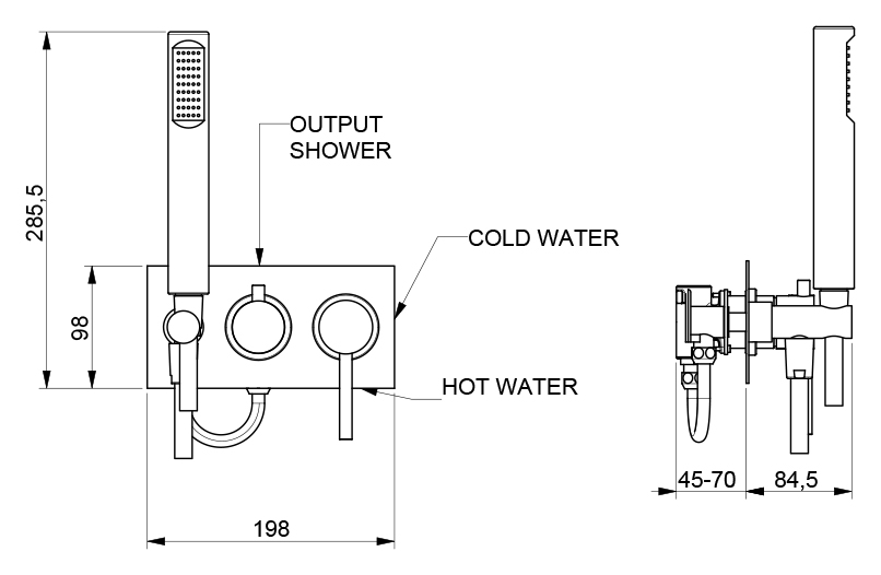 Комплектация: смеситель, внутренняя часть, душевая лейка, душевой шланг