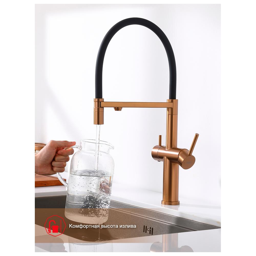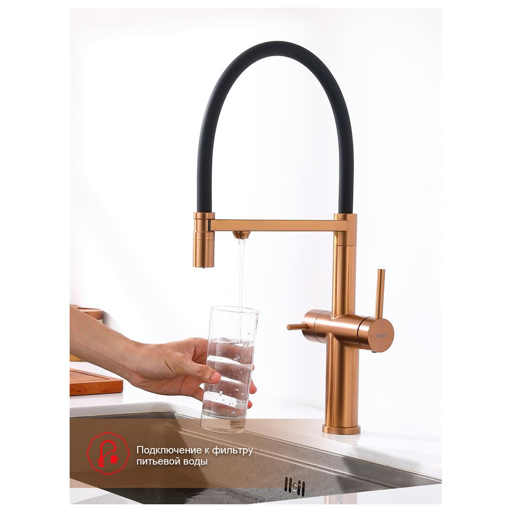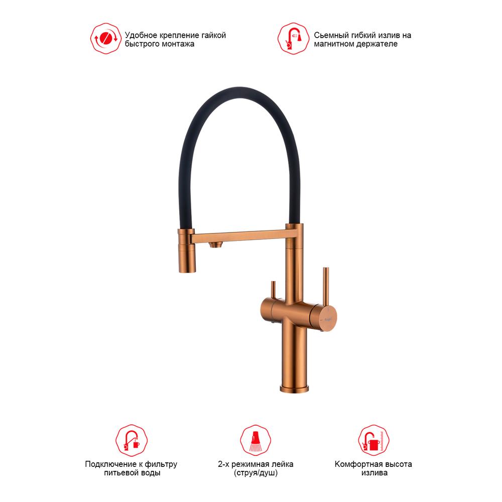 Cмеситель для кухни под фильтр с гибким изливом Raglo матовая медь R20.63.33