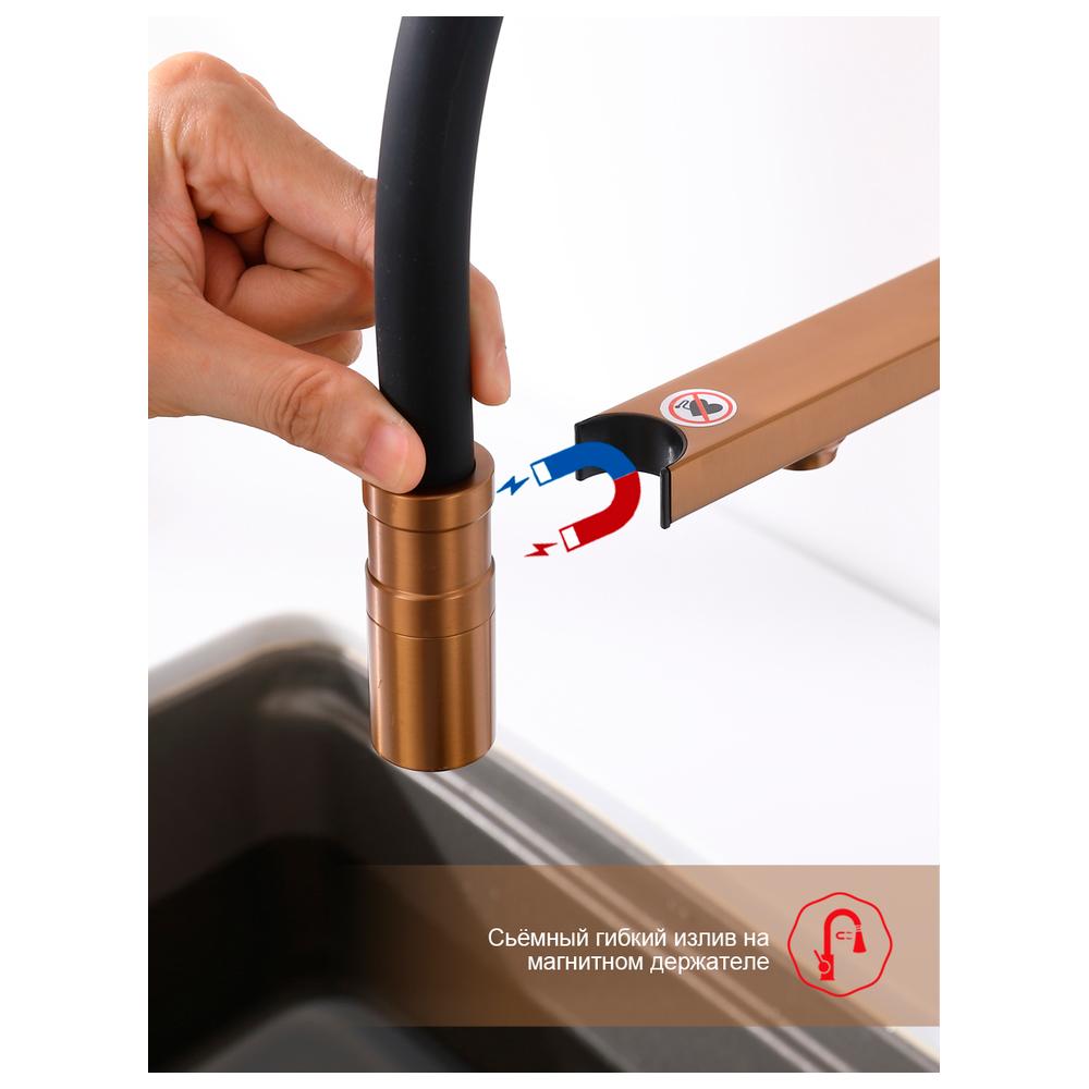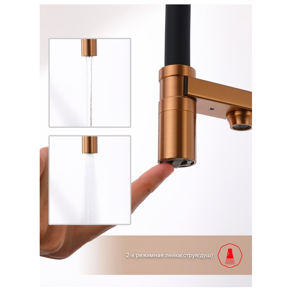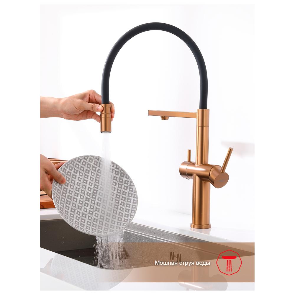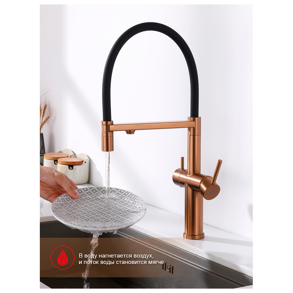 Cмеситель для кухни под фильтр с гибким изливом Raglo матовая медь R20.63.33
