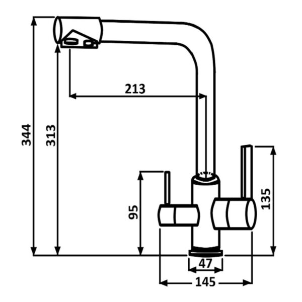 ●Исполнение излива: поворотный, совмещенный излив для питьевой воды.