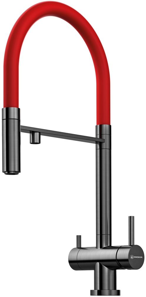 Смеситель для кухни под фильтр Omoikiri Kanto-GM вороненая сталь/красный 4994013