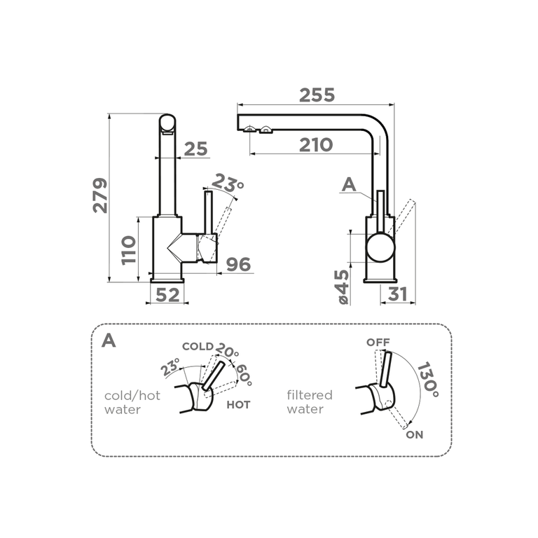 • Технология PURE LIFE: Подключение фильтра для очистки воды. Фильтрованная вода подается по отдельной трубке и не смешивается с водопроводной водой;