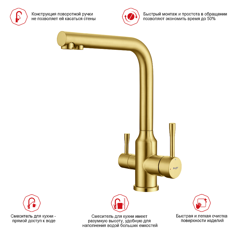 Смеситель для кухни под фильтр Raglo R81.61.03 сатин золотой