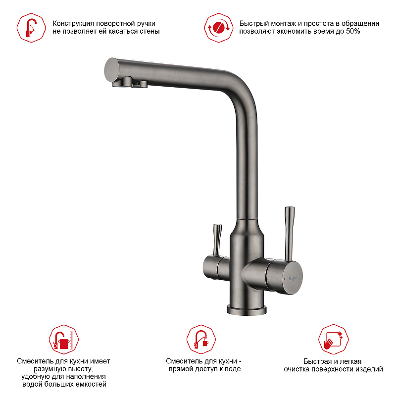 Смеситель для кухни под фильтр Raglo R81.61.09 графит матовый