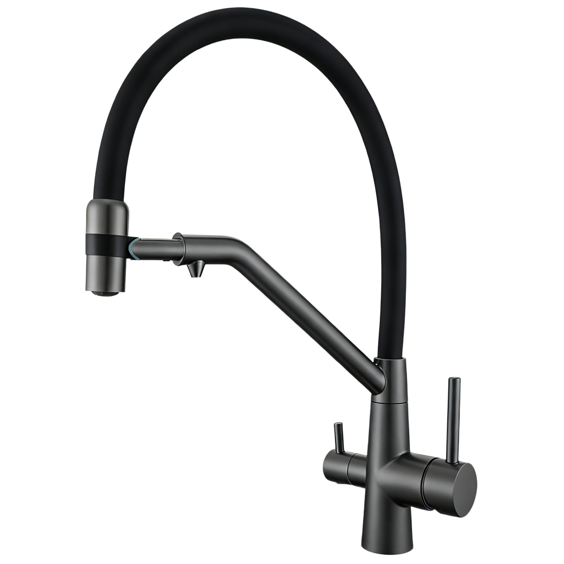 Смеситель для кухни под фильтр с гибким изливом Avrora Kitchen оружейная сталь AV9009GM
