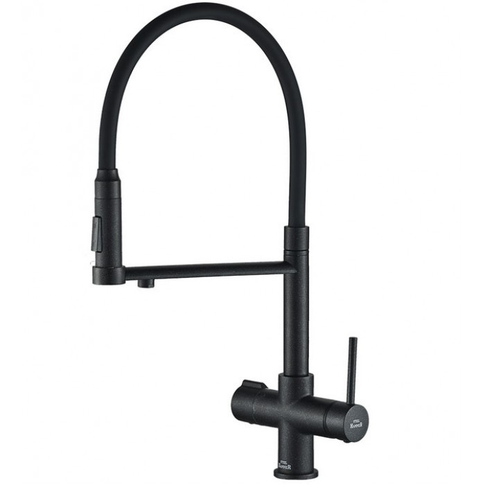 - Смеситель для кухни под фильтр с гибким изливом ZorG Steel Hammer SH 2003 BLACK
