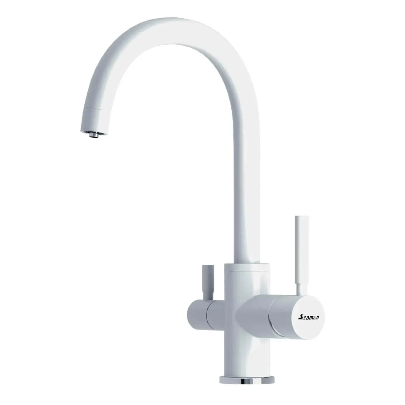 Смеситель для кухни под фильтр SeaMan Barcelone белый глянцевый SSL-5385-SG