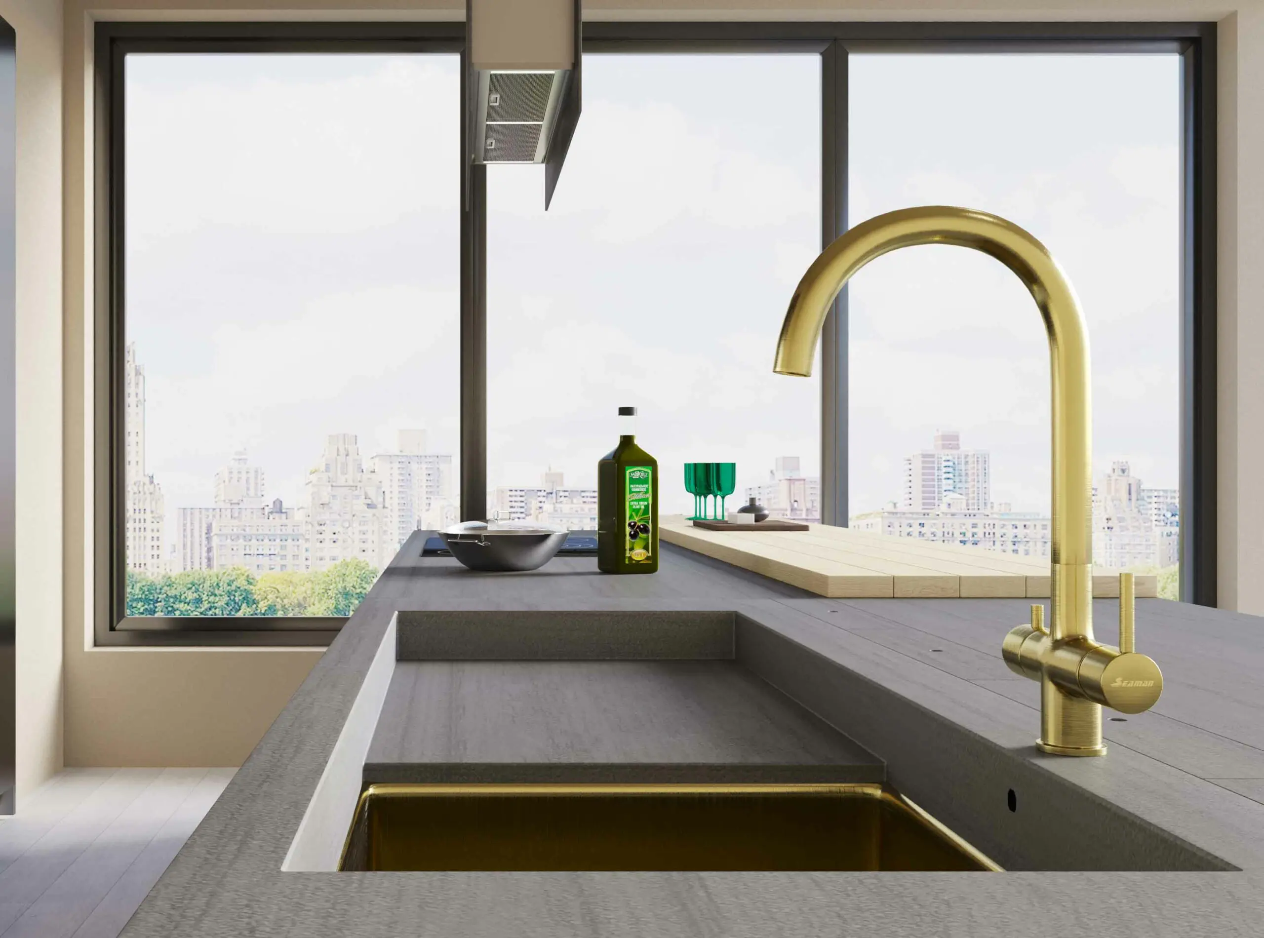 Смеситель для кухни под фильтр SeaMan Eco Venice светлое золото сатин SSN-1338-LG
