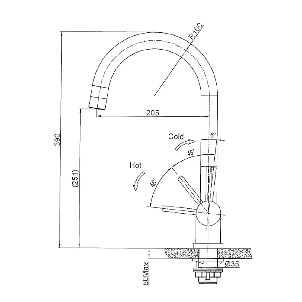 Длина излива: 251 мм