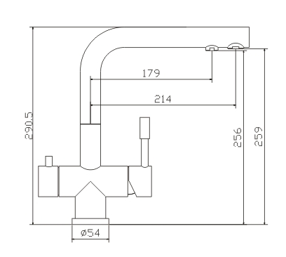 Длина излива: 256/ 259 мм