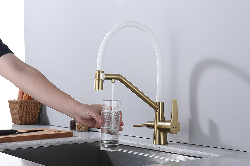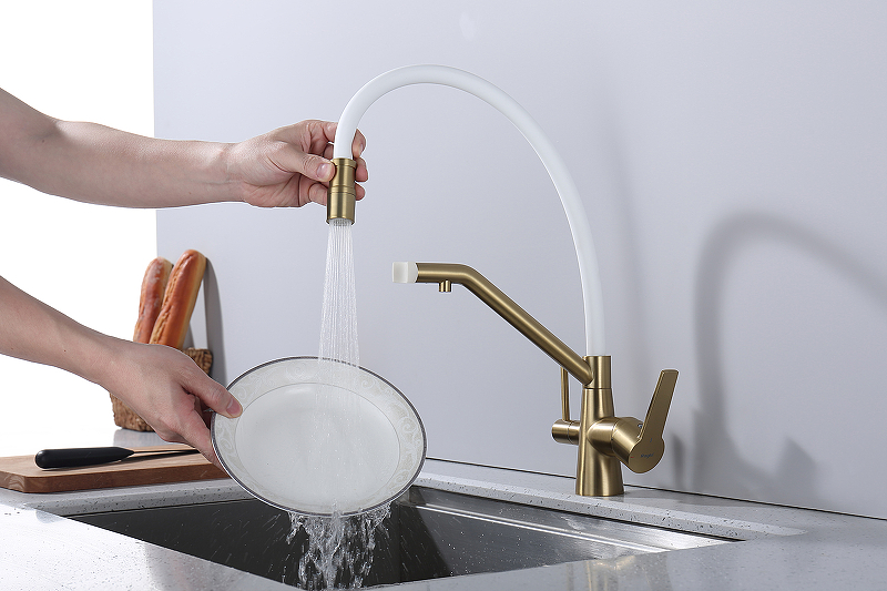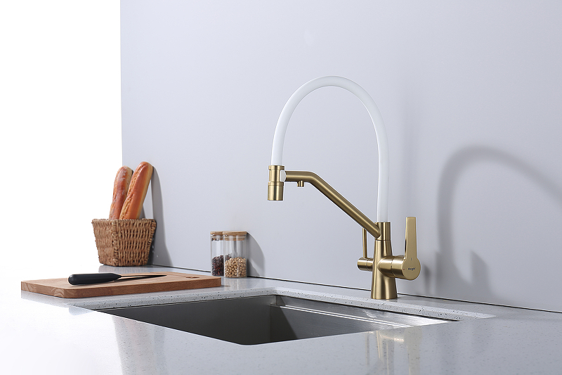 Смеситель для кухни под фильтр со съемным изливом Raglo R80.62.03 сатин золотой