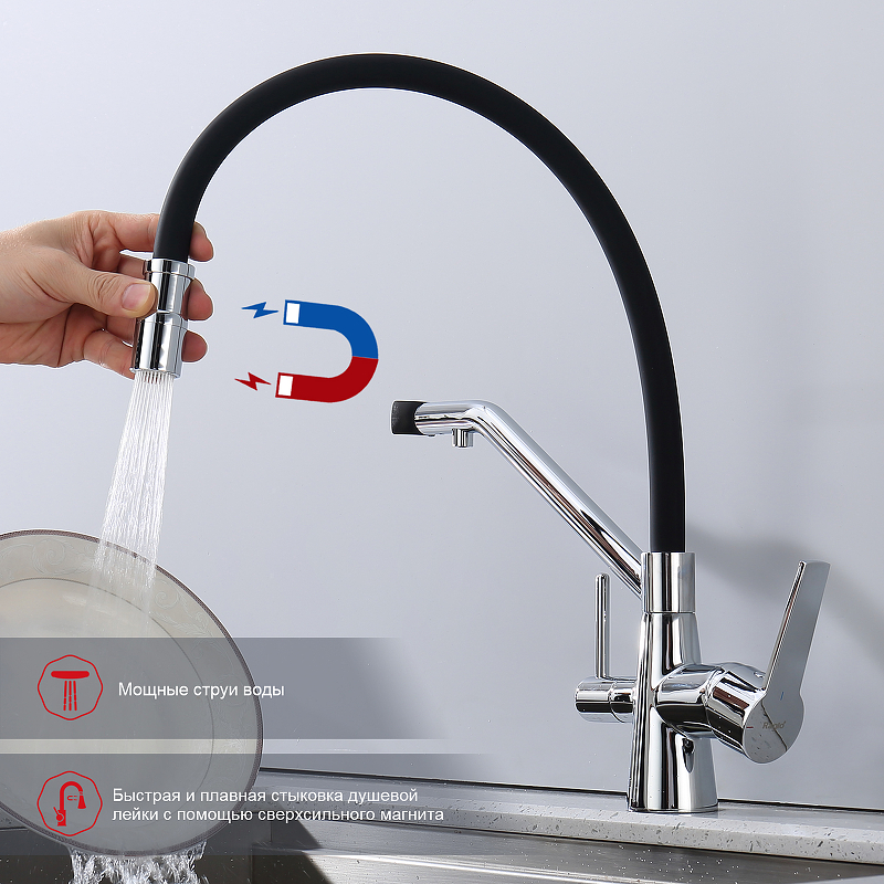 | Особенности | Подключение к фильтру, съемный излив на магните |