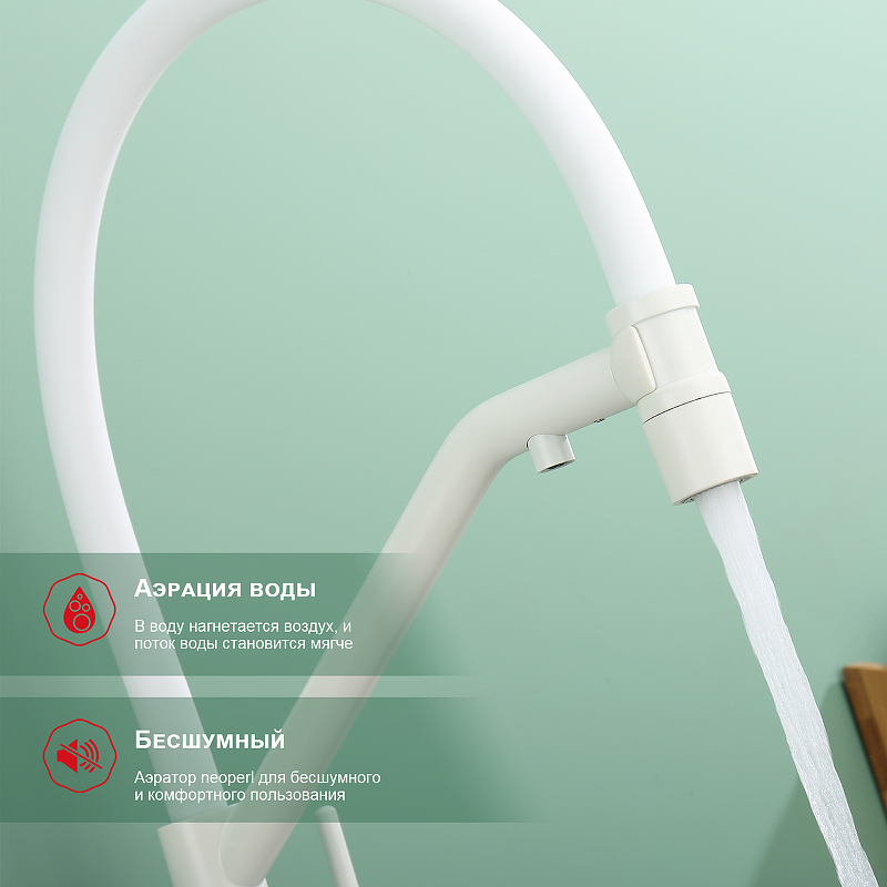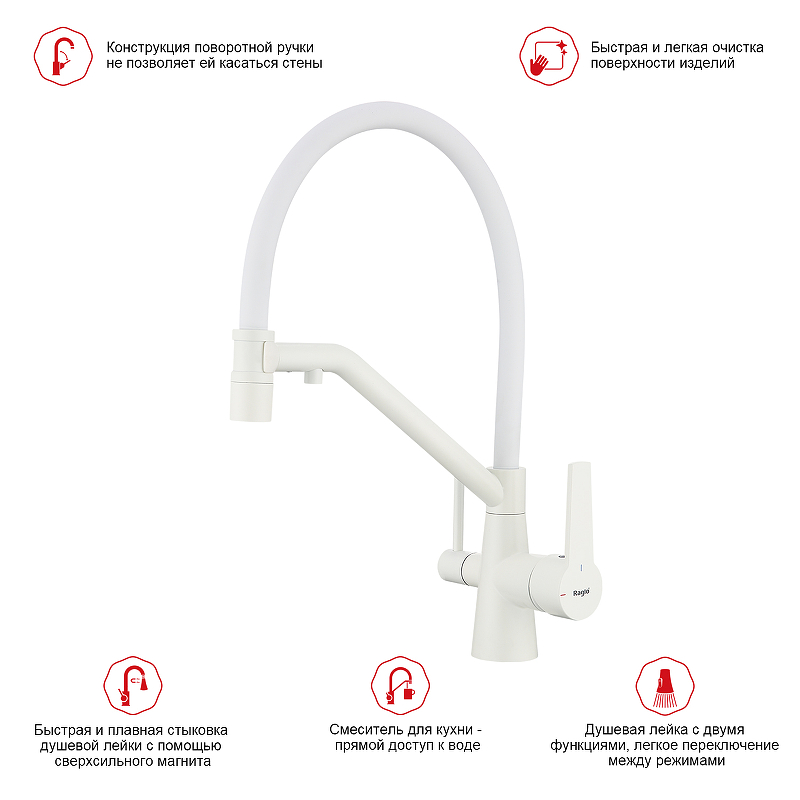 Смеситель для кухни под фильтр со съемным изливом Raglo R80.62.08 белый матовый
