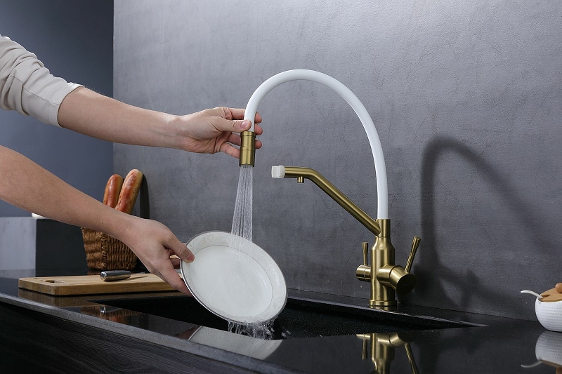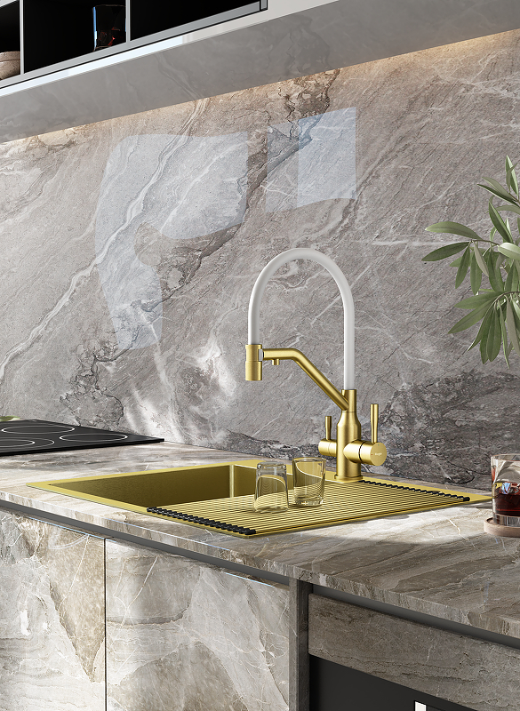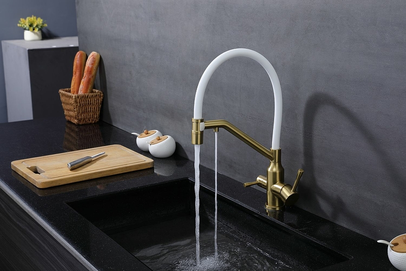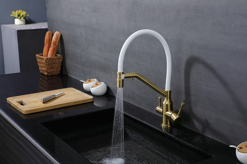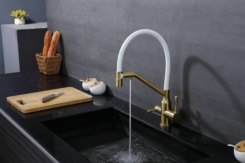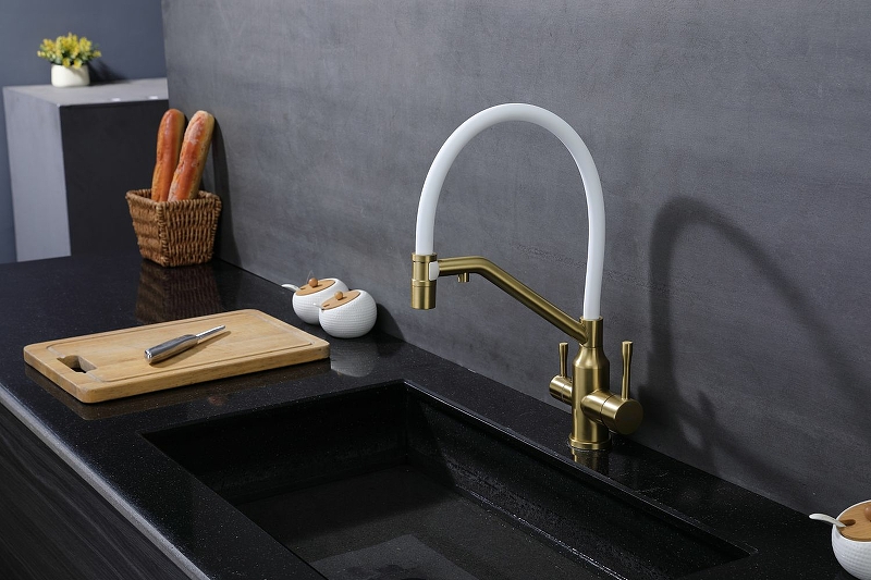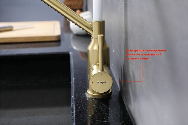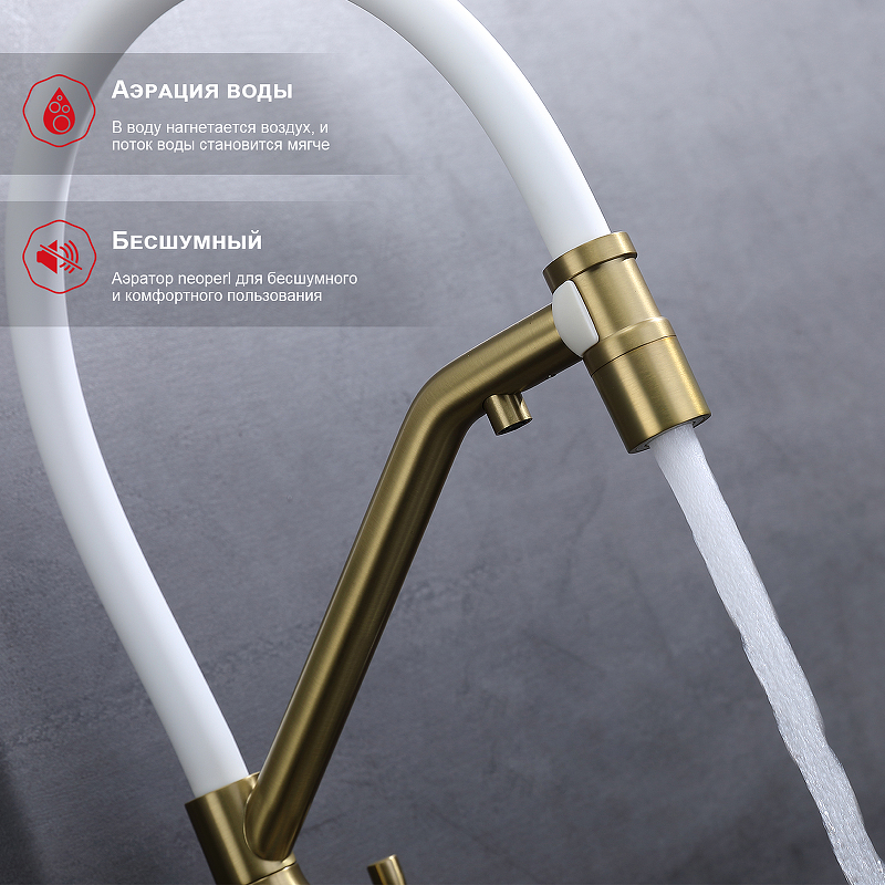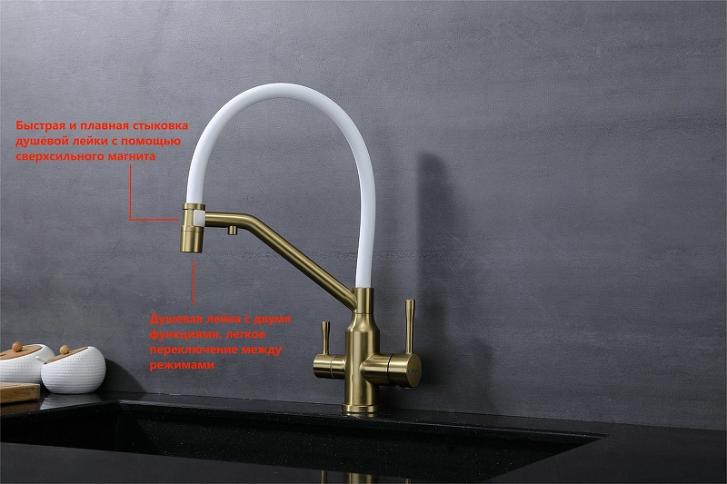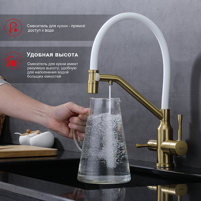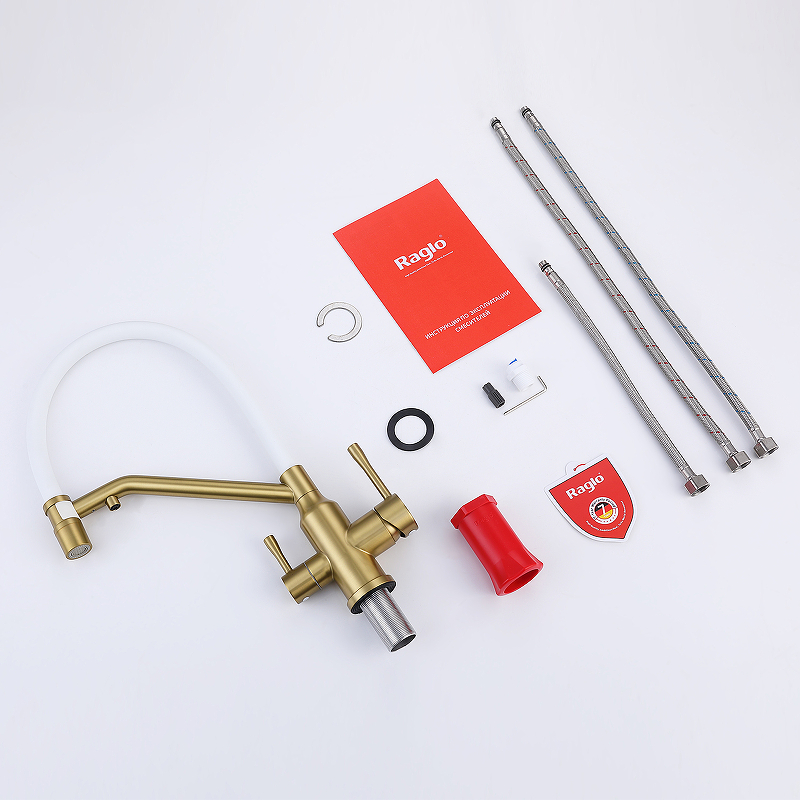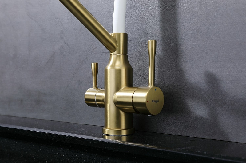 Смеситель для кухни под фильтр со съемным изливом Raglo R81.62.03 сатин золотой