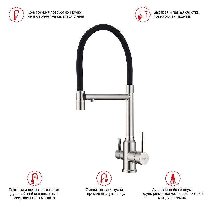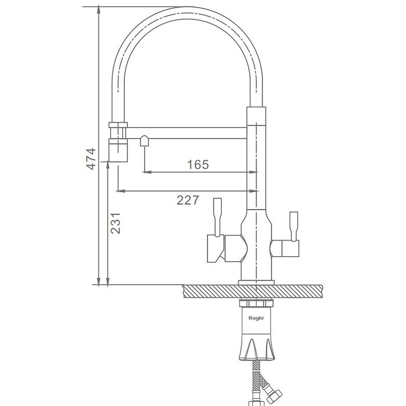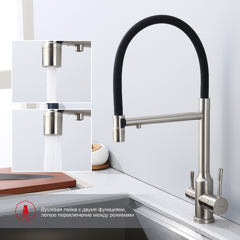 Смеситель для кухни под фильтр со съемным изливом Raglo R81.63.05 сатин