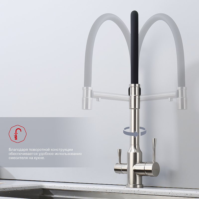 | Особенности | Подключение к фильтру, съемный излив на магните |