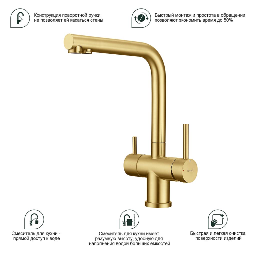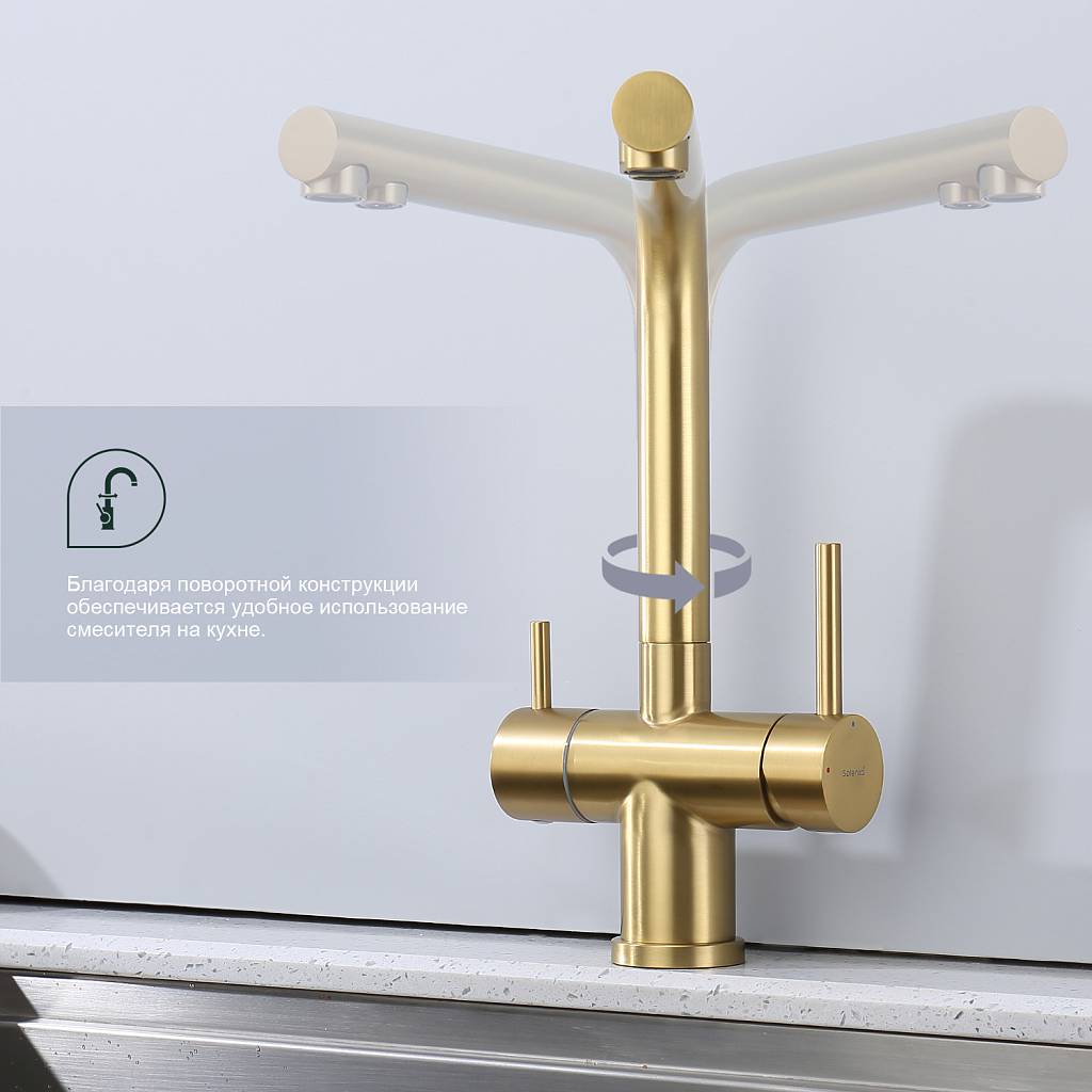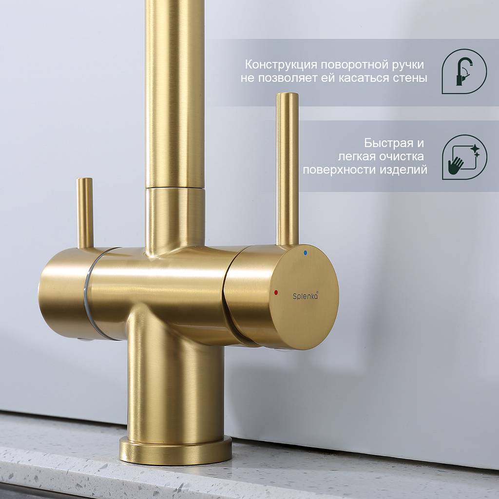 Смеситель для кухни под фильтр Splenka S70.61.03 золотой сатин