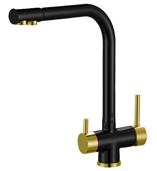 В смесителе применена технология "двойного канала", которая позволяет подключить питьевой фильтр сразу к смесителю. Вода подается не смешиваясь по разным каналам. Рукоятка управления водопроводной водой находится справа от носика, управление питьевой водой - слева.