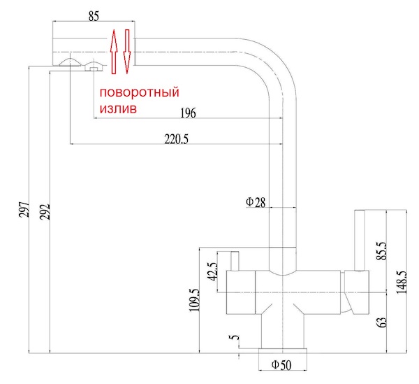 технология двойного канала - водопроводная и питьевая вода не смешивается