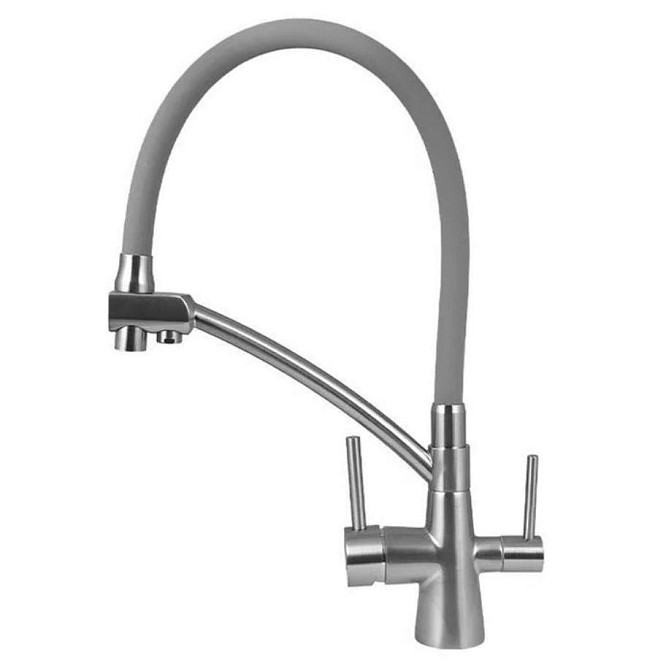 Гибкий излив длиной позволяет легко поворачивать его под любым углом, обеспечивая удобство использования. Он выполнен из прочного, но мягкого на ощупь силикона серого цвета. Материал излива устойчив к высоким температурам и не нагревается при контакте с горячей водой.