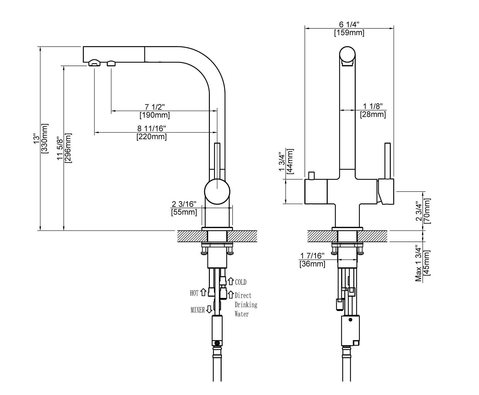| Особенности | Поворотный излив/ выдвижная лейка/ под фильтр |
